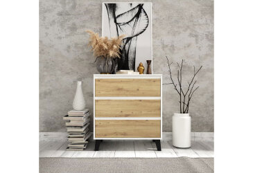 - super-cena, skladom, drevotrieska, laminovaná, so zásuvkami, s dvierkami, dub artisan / biela, guličkové vedenie plného výsuvu, 3 zásuvky, drevotrieska, moderný štýl.
