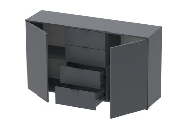 - super-cena, drevotrieska, laminovaná, s dvierkami, grafit, guličkové vedenie plného výsuvu, 4 zásuvky, drevotrieska, moderný štýl.