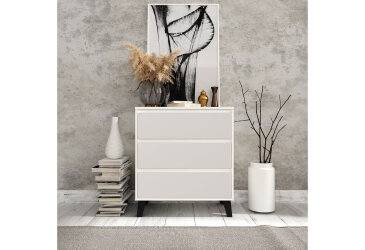 - super-cena, skladom, drevotrieska, laminovaná, so zásuvkami, biela / kašmír, guličkové vedenie plného výsuvu, 3 zásuvky, drevotrieska, moderný štýl.