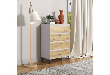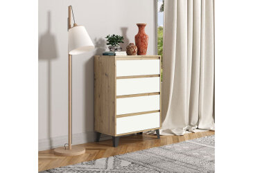 - super-cena, skladom, drevotrieska, laminovaná, so zásuvkami, dub artisan / biela, guličkové vedenie plného výsuvu, 4 zásuvky, drevotrieska, moderný štýl.