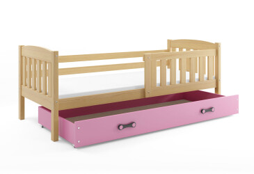 - super-cena, 80x160 cm, 1 miesto na spanie, drevo, lakovaná, borovica / ružový, s úložným priestorom, s roštom, drevo, detský štýl.