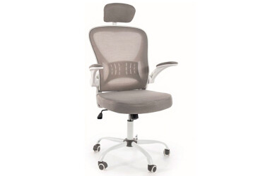 - skladom, kancelárske, čalúnenie, bez podrúčok, šedo-biely, guma, koženka, zdvíhací-otočný mechanizmus, 110 kg, moderný štýl.