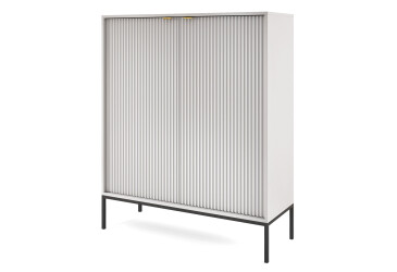 - super-cena, skladom, MDF, lesklá, s dvierkami, biely lesk, guličkové vedenie plného výsuvu, 1 zásuvka, drevotrieska, moderný štýl.