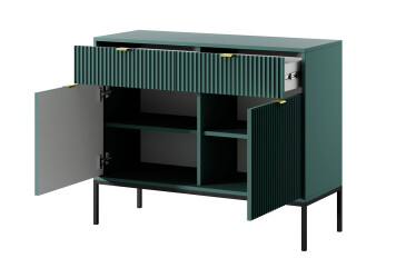 - akcia, drevotrieska, laminovaná, s dvierkami, polárna jelša / onyx, guličkové vedenie plného výsuvu, 2 zásuvky, drevotrieska, moderný štýl.