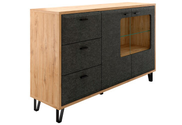 - super-cena, MDF, možnosť osvetlenia políc, laminovaná, vitrína, s dvierkami, dub navarra / grafit, guličkové vedenie plného výsuvu, 3 zásuvky, drevotrieska, loft.