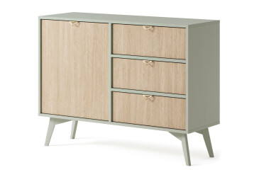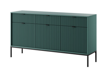 - super-cena, MDF, matná, s dvierkami, čierny / zelený, guličkové vedenie plného výsuvu, 3 zásuvky, drevotrieska, škandinávsky štýl.