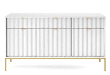 - super-cena, MDF, matná, s dvierkami, zlatý / biely, guličkové vedenie plného výsuvu, 3 zásuvky, drevotrieska, škandinávsky štýl.