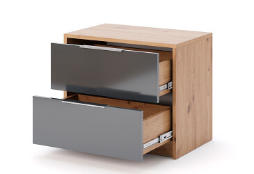 - závesný, top, drevotrieska, laminovaná, grafit, guličkové vedenie plného výsuvu, so zásuvkami, drevotrieska, moderné.