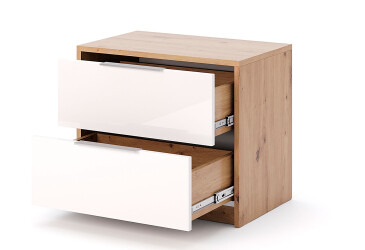 - závesný, super-cena, drevotrieska, lesklá, laminovaná, dub artisan, guličkové vedenie plného výsuvu, so zásuvkami, drevotrieska, moderné.