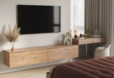 - voľne stojaci, super-cena, drevotrieska, laminovaná, dub artisan, guličkové vedenie plného výsuvu, s police a zásuvky, drevotrieska, moderný štýl.
