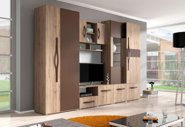 • super-cena, MDF, dodávané s osvetlením, laminovaná, s presklenými dvierkami, orech / kašmír, drevotrieska, štýl minimalizmus.