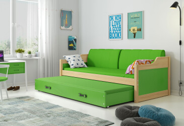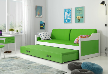 - super-cena, 90x200 cm, 2 miesta na spanie, MDF, lakovaná, borovica / zelený, s úložným priestorom, s roštom, drevo, detský štýl.