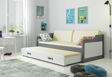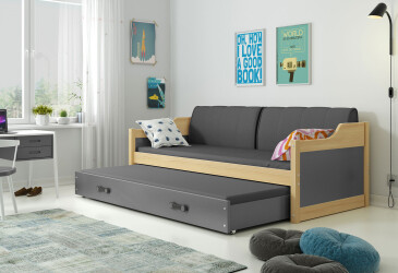 - super-cena, 90x200 cm, 2 miesta na spanie, MDF, lakovaná, borovica / grafit, s úložným priestorom, s roštom, drevo, detský štýl.