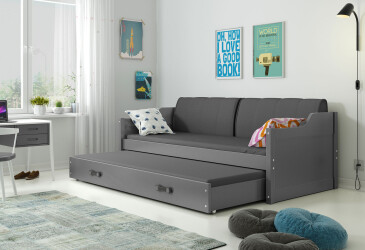 - super-cena, 90x200 cm, 2 miesta na spanie, MDF, lakovaná, grafit, s úložným priestorom, s roštom, drevo, detský štýl.