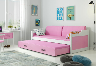 - super-cena, 90x200 cm, 2 miesta na spanie, MDF, lakovaná, biely / ružový, s úložným priestorom, s roštom, drevo, detský štýl.