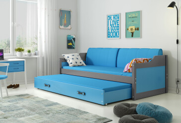 - super-cena, 90x200 cm, 2 miesta na spanie, MDF, lakovaná, grafit / svetlo modrý, s úložným priestorom, s roštom, drevo, detský štýl.