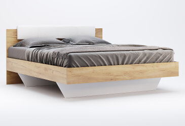 - super-cena, 160x200 cm, 2 miesta na spanie, drevotrieska, lesklá, laminovaná, dub kraft / biely, bez úložného priestoru, hrubá tkanina, bez roštu, drevotrieska, moderný štýl.