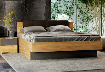- super-cena, 160x200 cm, 2 miesta na spanie, drevotrieska, laminovaná, grafit, s úložným priestorom, bez roštu, drevotrieska, moderné.