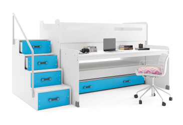 - super-cena, 80x200 cm, 3 miesta na spanie, drevo, lakovaná, biely / svetlo modrý, s úložným priestorom, s roštom, MDF.