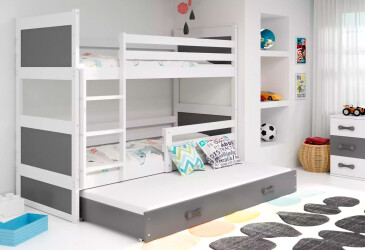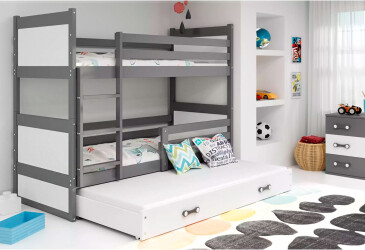 - super-cena, 90x200 cm, 3 miesta na spanie, MDF, lakovaná, grafit / biely, bez úložného priestoru, s roštom, drevo.