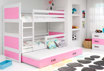 - super-cena, 80x200 cm, 3 miesta na spanie, drevo, lakovaná, biely / ružový, s úložným priestorom, s roštom, MDF.