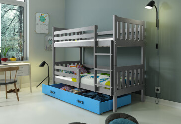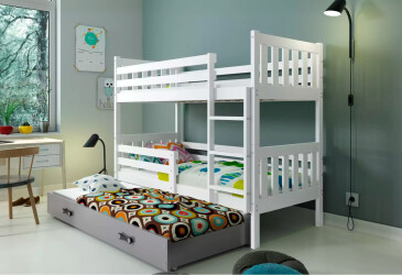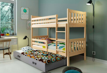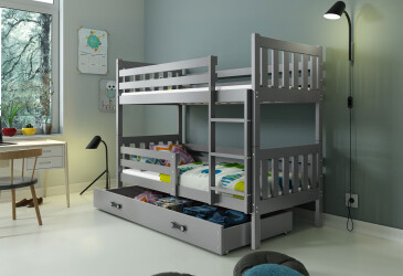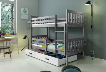 - super-cena, 80x190 cm, 3 miesta na spanie, drevo, lakovaná, grafit, bez úložného priestoru, s roštom, drevo.
