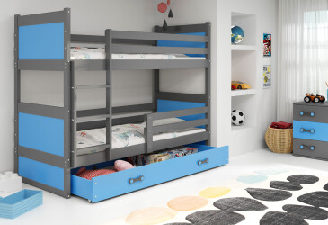 - super-cena, 90x200 cm, 2 miesta na spanie, MDF, lakovaná, grafit / svetlo modrý, s úložným priestorom, s roštom, drevo.