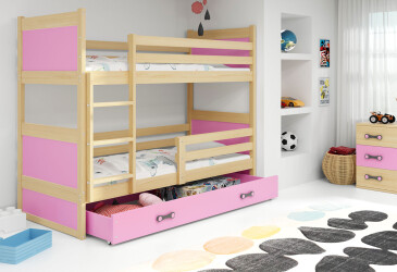 - super-cena, 90x200 cm, 2 miesta na spanie, MDF, lakovaná, borovica / ružový, s úložným priestorom, s roštom, drevo.