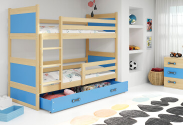 - super-cena, 90x200 cm, 2 miesta na spanie, MDF, lakovaná, borovica / svetlo modrý, s úložným priestorom, s roštom, drevo.