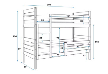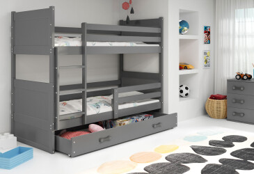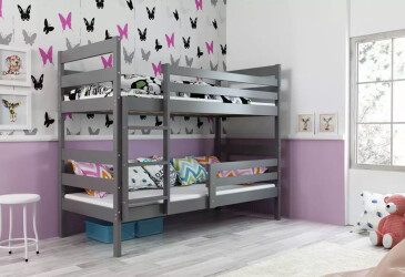 - super-cena, 80x190 cm, 3 miesta na spanie, drevo, lakovaná, grafit, bez úložného priestoru, s roštom, drevo.
