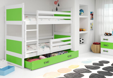 - super-cena, 90x200 cm, 2 miesta na spanie, MDF, lakovaná, biely / zelený, s úložným priestorom, s roštom, drevo.