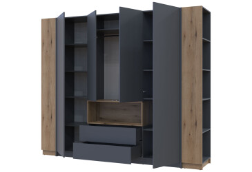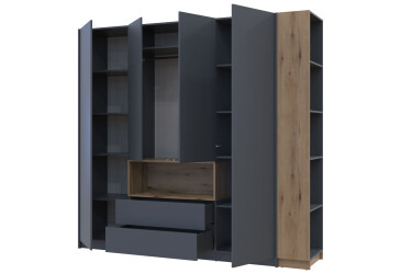 - super-cena, drevotrieska, laminovaná, grafit / dub evok / grafit, guličkové vedenie plného výsuvu, drevotrieska, polica, tyč, zásuvky, moderný štýl.