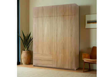 - super-cena, drevotrieska, laminovaná, dub sonoma, guličkové vedenie plného výsuvu, drevotrieska, polica, tyč, zásuvky, moderný štýl.