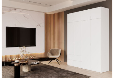 - super-cena, drevotrieska, laminovaná, biela, guličkové vedenie plného výsuvu, drevotrieska, polica, tyč, zásuvky, moderný štýl.