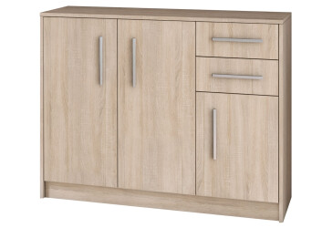 - super-cena, skladom, drevotrieska + MDF, laminovaná, patinovaná, dub navarra, guličkové vedenie plného výsuvu, uzavreté, drevotrieska, moderný štýl.