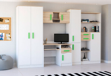 Naša ponuka stien v detskej izbe vám umožní vytvoriť jedinečný a funkčný priestor, ktorý bude odrážať osobnosť vašich detí. S moderným dizajnom a kvalitnými materiálmi si môžete byť istí, že investujete do niečoho, čo bude slúžiť dlhé roky. Prejdite si našu ponuku a objavte, ako jednoducho môžete premeniť detskú izbu na miesto plné radosti a kreativity.