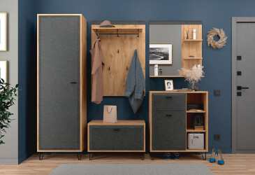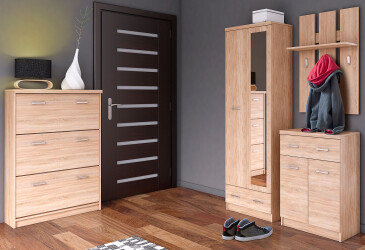 Naše súpravy na chodbe sú ideálnym riešením pre každého, kto hľadá moderný a funkčný nábytok do vstupných priestorov. S širokým výberom produktov, od praktických skriniek po elegantné zrkadlá, si môžete jednoducho zariadiť svoj domov tak, aby bol nielen štýlový, ale aj maximálne praktický. Každá súprava je navrhnutá s ohľadom na moderné trendy a potreby dnešných domácností.