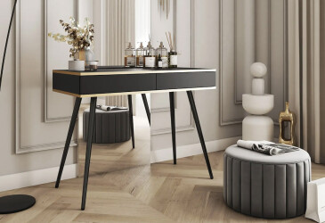 V našej ponuke nájdete toaletné stolíky v rôznych dekoroch, vrátane elegantného čierneho, moderného čierneho s zelenými akcentmi, ako aj štýlového zlatého a bieleho. Bez ohľadu na to, či preferujete minimalistický škandinávsky štýl alebo moderný vzhľad, určite si vyberiete stolík, ktorý dokonale zapadne do vášho domova. Naše produkty sú vyrobené z kvalitných materiálov, ako sú drevotrieska a MDF, čo zaručuje ich dlhú životnosť a odolnosť.