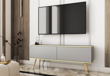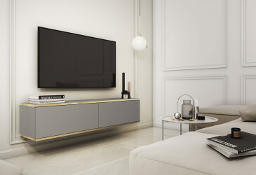 - voľne stojaci, super-cena, MDF, matná, zlatý kov / sivý, drevotrieska, s dvierkami, moderný štýl.