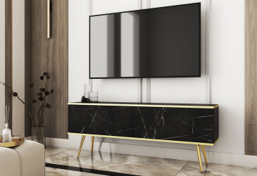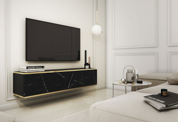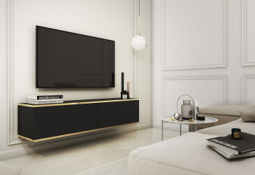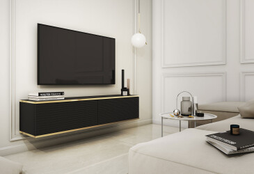 - voľne stojaci, super-cena, MDF, matná, čierny, zlatý / čierny, guličkové vedenie plného výsuvu, drevotrieska, s policami, so zásuvkami, s dvierkami, škandinávsky štýl.