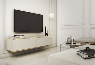 - voľne stojaci, super-cena, MDF, matná, zlatý / biely, guličkové vedenie plného výsuvu, drevotrieska, s policami, so zásuvkami, s dvierkami, škandinávsky štýl.