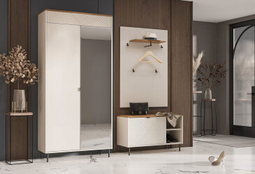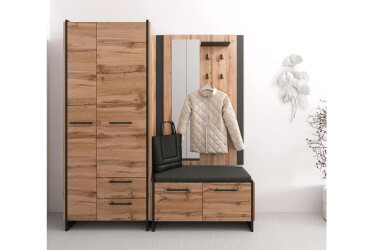 Naše vešiaky sú vyrobené z kvalitných materiálov, ako sú drevotrieska a MDF, ktoré zaručujú dlhú životnosť a odolnosť. Môžete si vybrať z rôznych dekorov, ako sú biela, dub artisan, dub navarra a ďalšie, ktoré sa ľahko kombinujú s rôznymi štýlmi zariadenia. Týmto spôsobom si môžete prispôsobiť svoj priestor podľa vlastných predstáv.