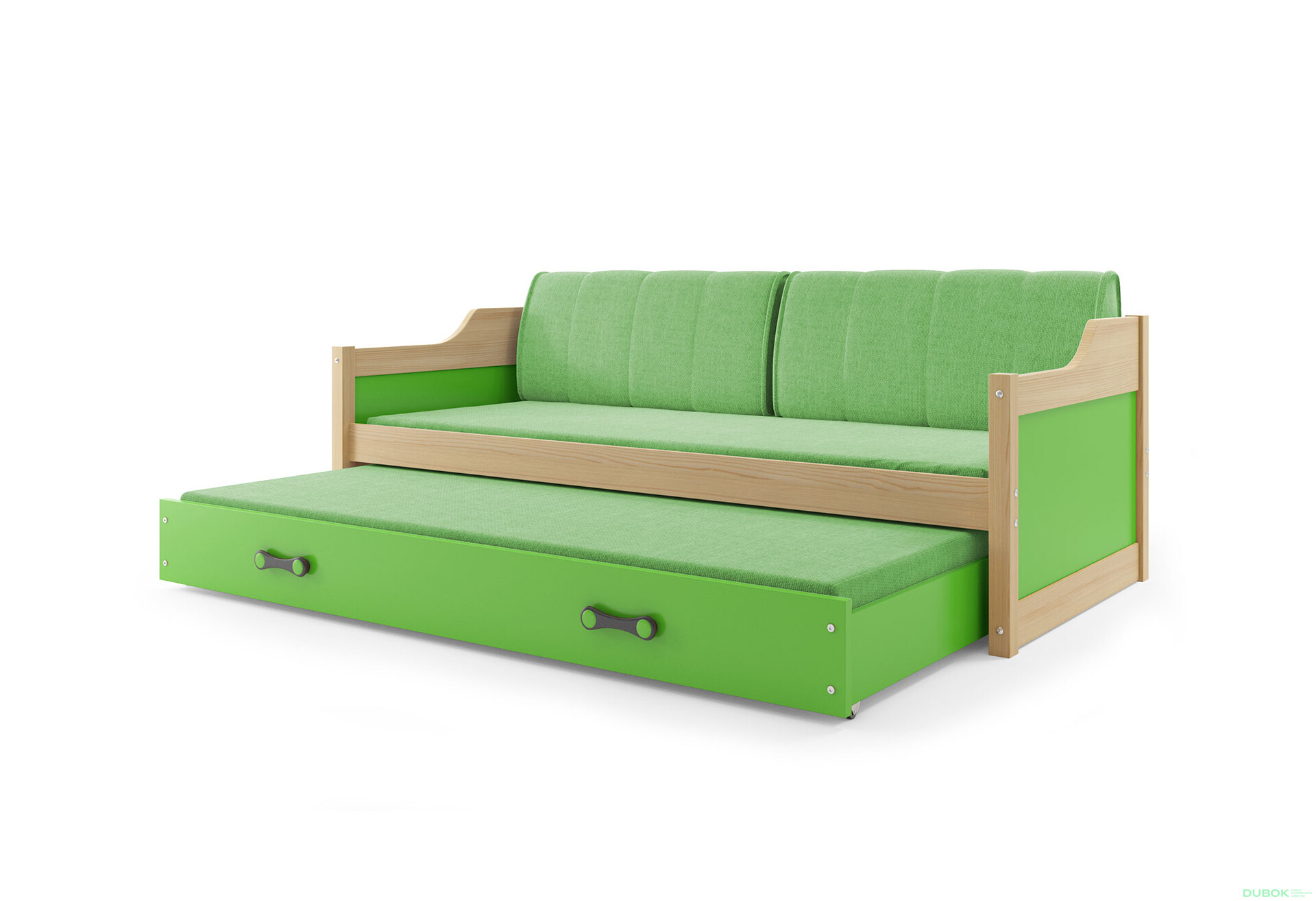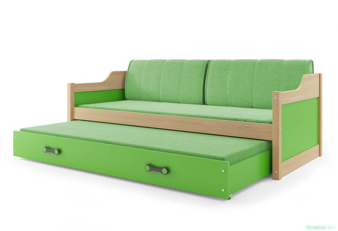 Objednajte si Dvojlôžko Dawid borovica / zelený 90x200 cm s roštom a dvoma matracmi na dubok.sk a doprajte svojim deťom kvalitný a pohodlný spánok v štýlovom prostredí.