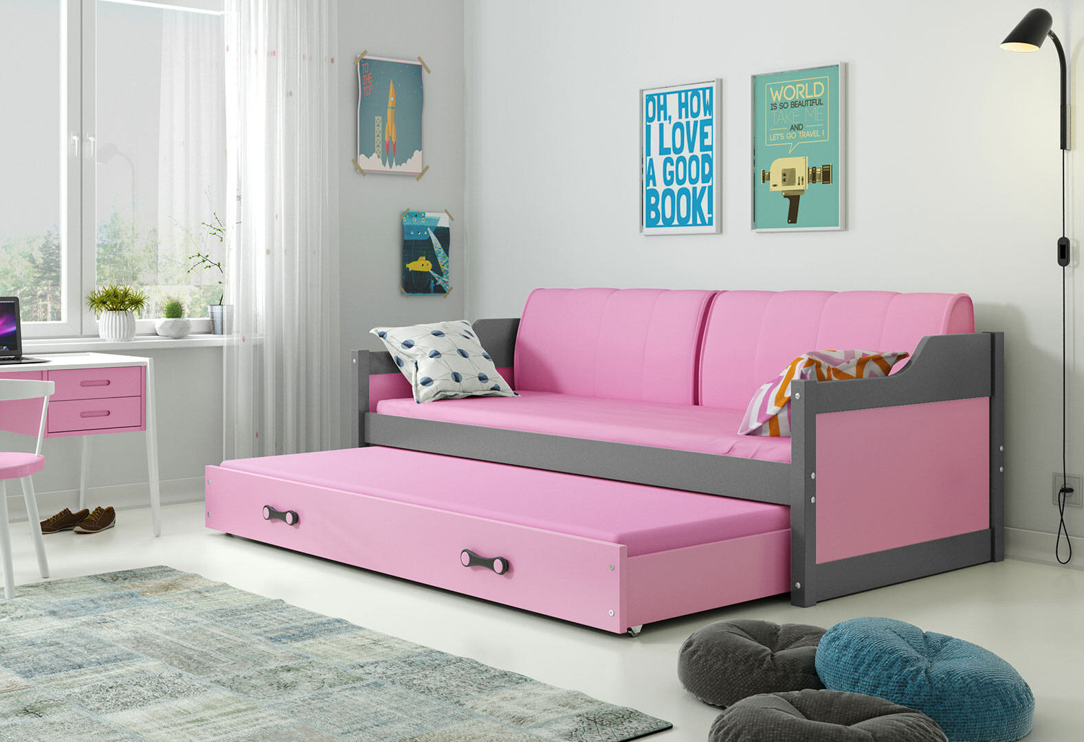 Fotografia 4 - Dvojlôžko Dawid grafit / ružový 90x200 cm s roštom, 2 matracmi