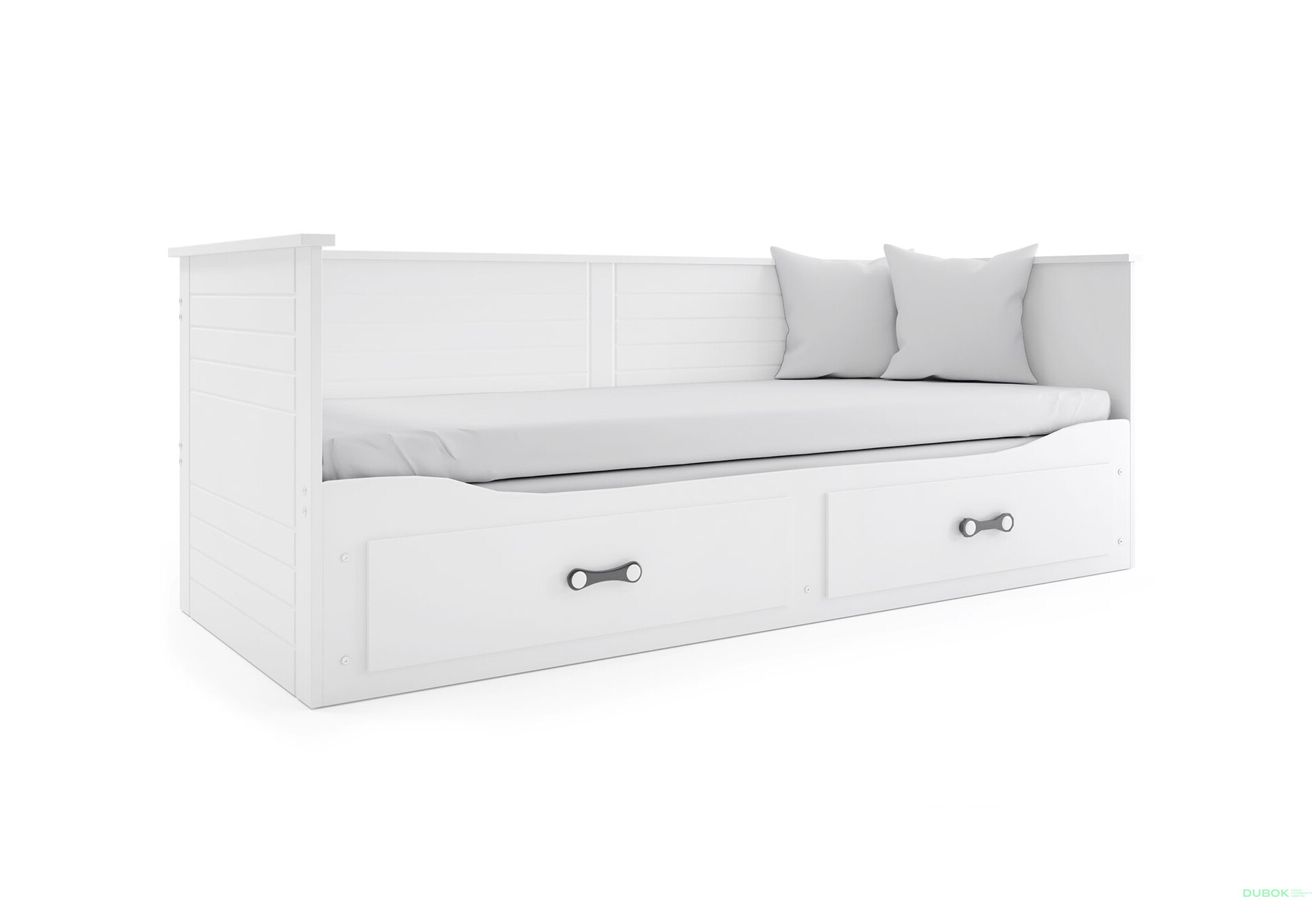 Dvojlôžko Hermes je ideálnym riešením pre tých, ktorí hľadajú moderný a funkčný nábytok do spálne. S rozmermi 80x200/160x200 cm ponúka dostatok priestoru pre pohodlný spánok dvoch osôb. Je vyrobené z kvalitného borovicového dreva, ktoré zaručuje dlhú životnosť a stabilitu. Biely dekor dodáva posteli elegantný a čistý vzhľad, ktorý sa hodí do rôznych interiérov. Vďaka lakovanej povrchovej úprave je nábytok nielen esteticky príjemný, ale aj jednoduchý na údržbu. Dvojlôžko je vybavené roštom a matracom, čo zaisťuje maximálny komfort pri spánku.