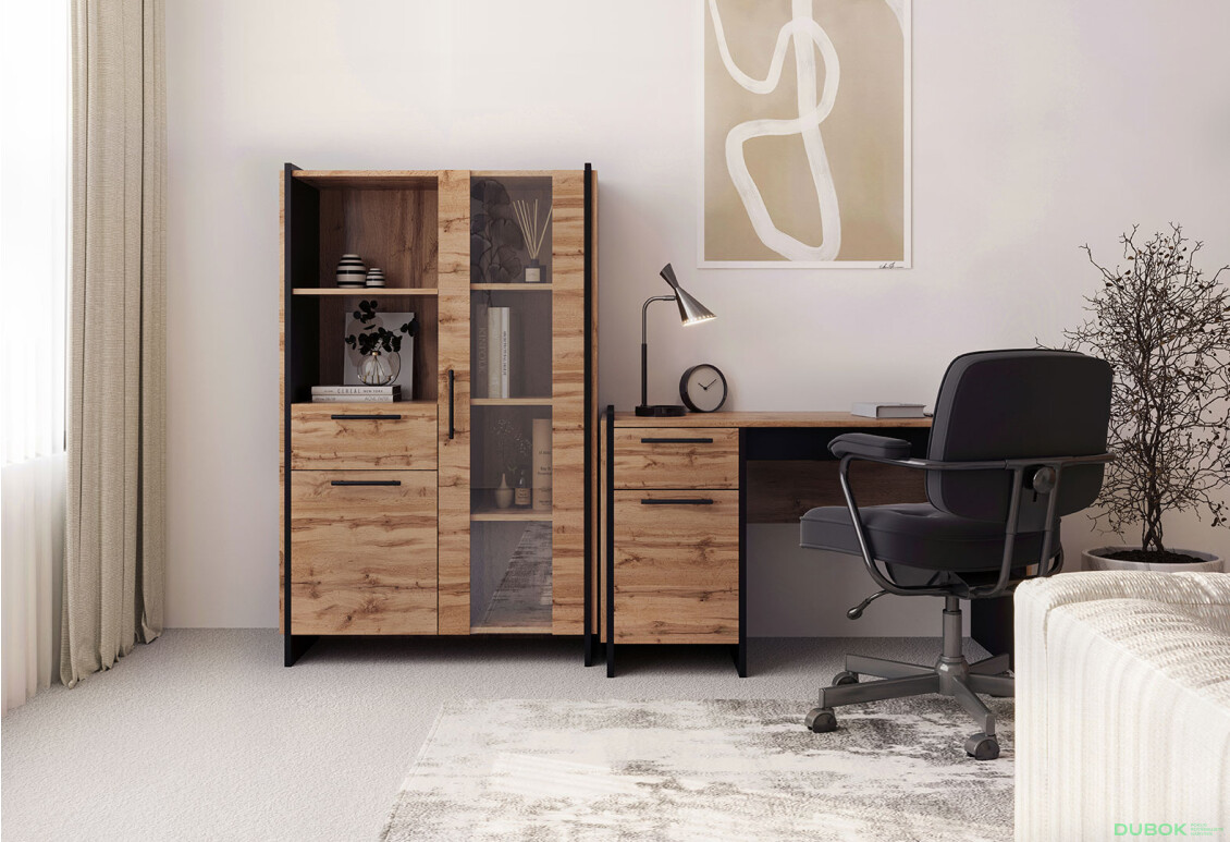 - Vitrína nízka 1d1w1s dub wotan / čierny Amino – 96.00 cm x 150.00 cm x 45.00 cm