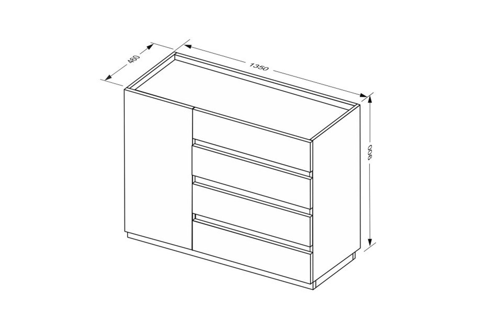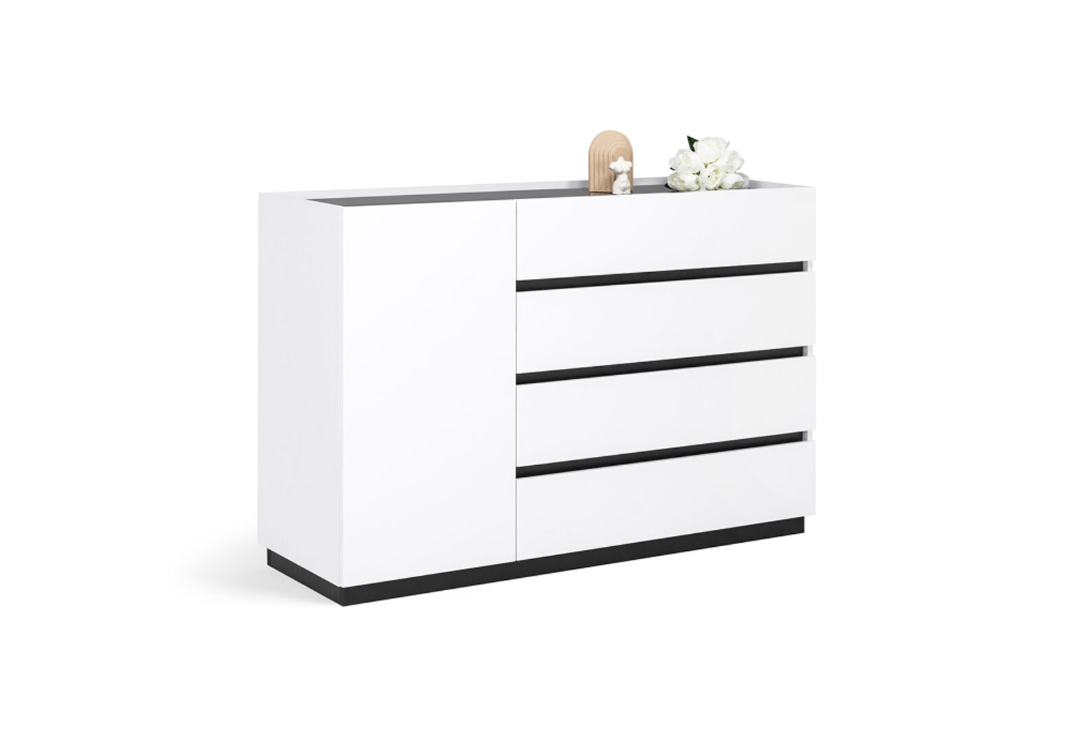 Komoda 1dv 4šx biely supermat, antracit Duo