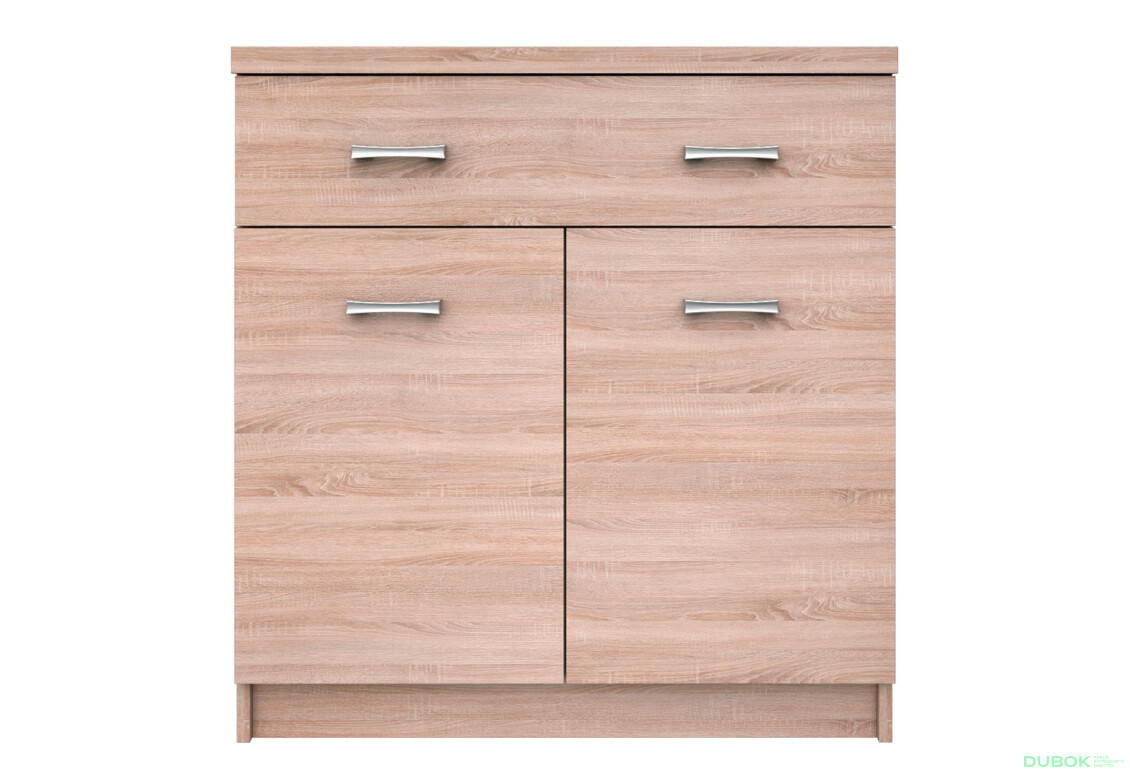 Komoda 2d1s dub sonoma Top Mix je moderný a funkčný kus nábytku, ktorý skvele doplní interiér vášho domova. S rozmermi 80 cm na šírku, 85 cm na výšku a 33 cm na hĺbku ponúka dostatok úložného priestoru v podobe jednej zásuvky a dvoch dvierok. Je vyrobená z kvalitnej drevotriesky s laminovanou povrchovou úpravou, čo zaručuje jej odolnosť a jednoduchú údržbu. Moderný štýl a dekor v odtieni dub sonoma dodávajú komode elegantný vzhľad, ktorý sa hodí do akéhokoľvek priestoru. Vďaka rolovaciemu vedeniu zásuviek je manipulácia s nimi pohodlná a bezproblémová. Tento produkt je ideálny pre tých, ktorí hľadajú kombináciu estetiky a praktickosti.