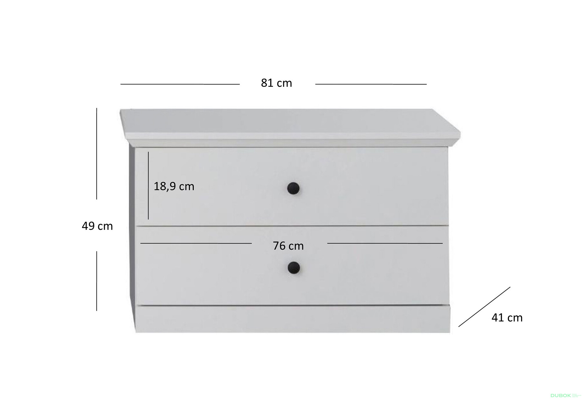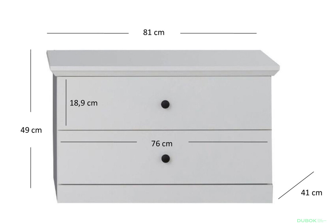 - Veľkosť. Komoda má ideálne rozmery 81 cm x 49 cm x 41 cm, čo z nej robí skvelý doplnok do menších aj väčších priestorov.