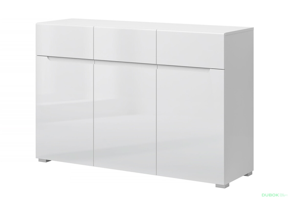 - Lesklý povrch. Biely lesk dodáva komode štýlový a moderný vzhľad, ktorý sa ľahko kombinuje s iným nábytkom.